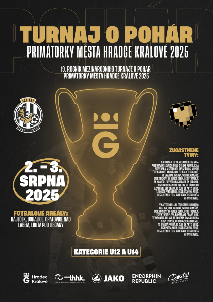 V našem fotbalovém areálu již tento víkend opět po roce přivítáme mezinárodní žákovský turnaj kategorie U12 a U14, který pořádá fotbalový klub FC Hradec Králové. Turnaje se zúčastní týmy z České republiky a Slovenska. Přijďte se podívat na třeba budoucí ligové hráče.